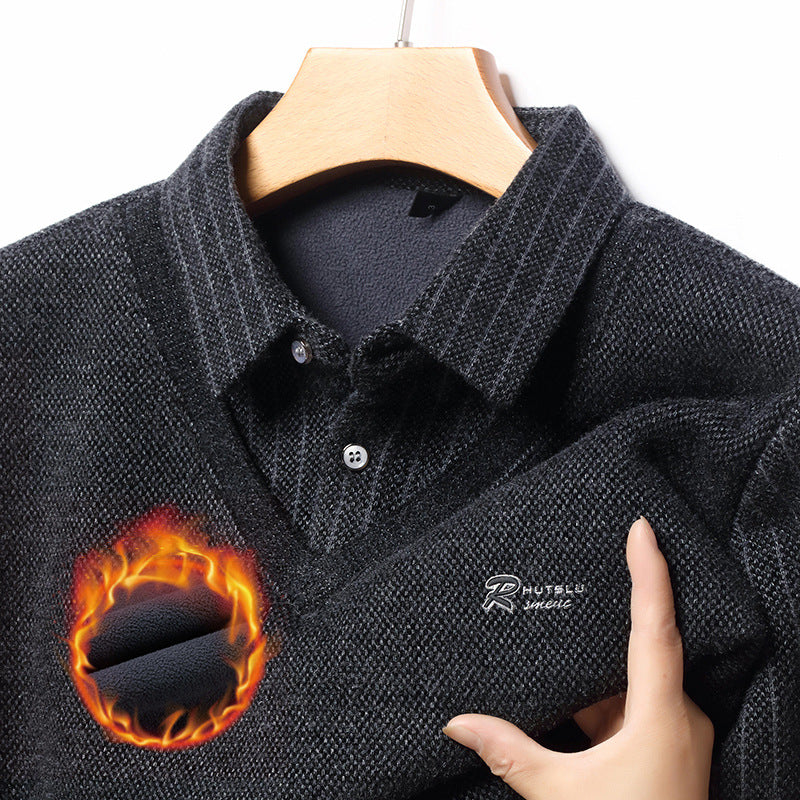 Herren eleganter V-Pullover mit strukturierten Ärmeln und klassischem Hemdkragen Aliams