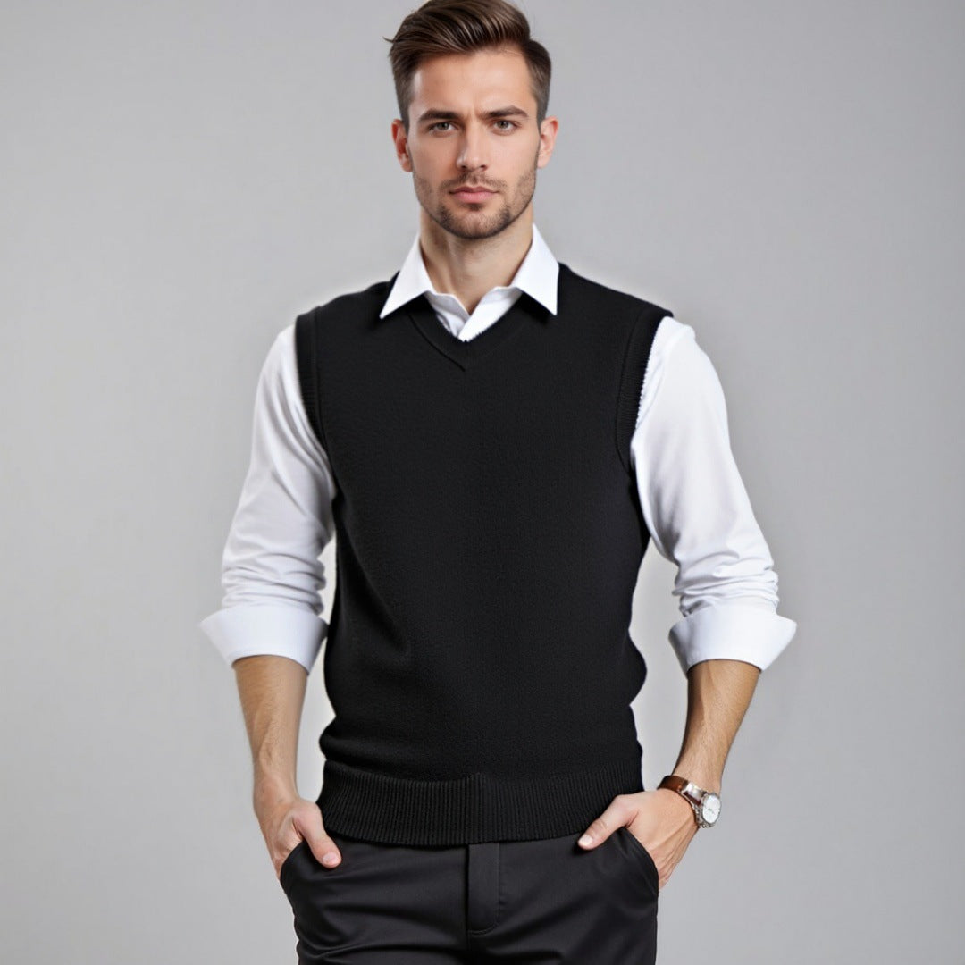 Herren eleganter V-Ausschnitt Pulloverweste Aliams