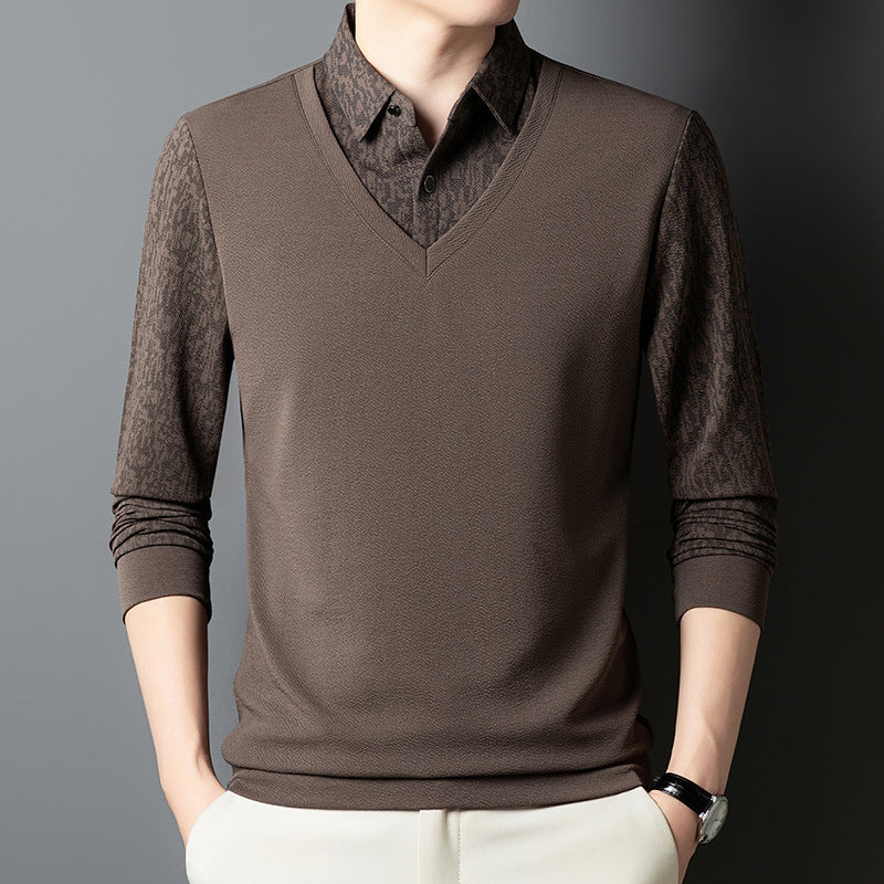 Herren eleganter V-Pullover mit gleitendem Hemdkragen und hochwertiger Textur Aliams