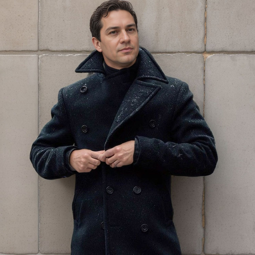 Herren eleganter Woll-Dufflecoat mit doppelter Knopfreihe und praktischen Taschen Aliams