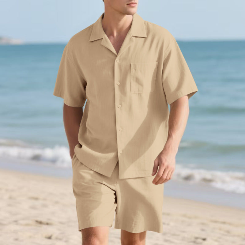 Herren elegantes Freizeit-Set aus hochwertigem, atmungsaktivem Stoff mit Kurzarm-Hemd und Shorts Aliams