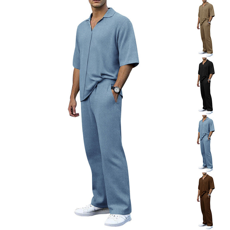 Herren elegantes Freizeit-Set mit modernem Kragen und bequemen Hosen Aliams