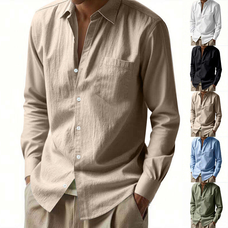 Herren elegantes Langarm-Hemd mit strukturiertem Design und praktischer Brusttasche Aliams