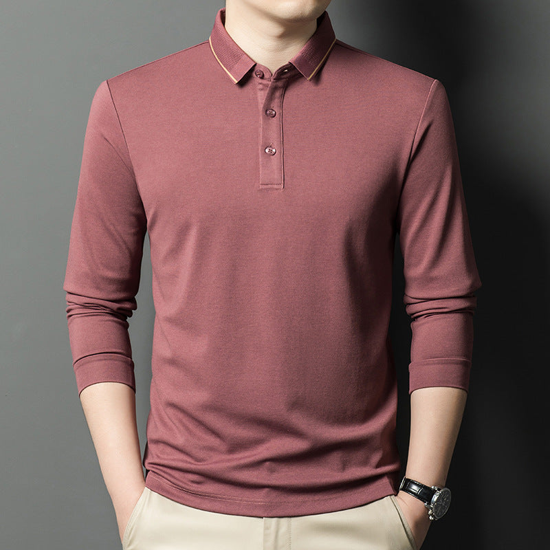 Herren elegantes Langarm-Polohemd mit kontrastierendem Kragen und modischen Knopfdetails Aliams