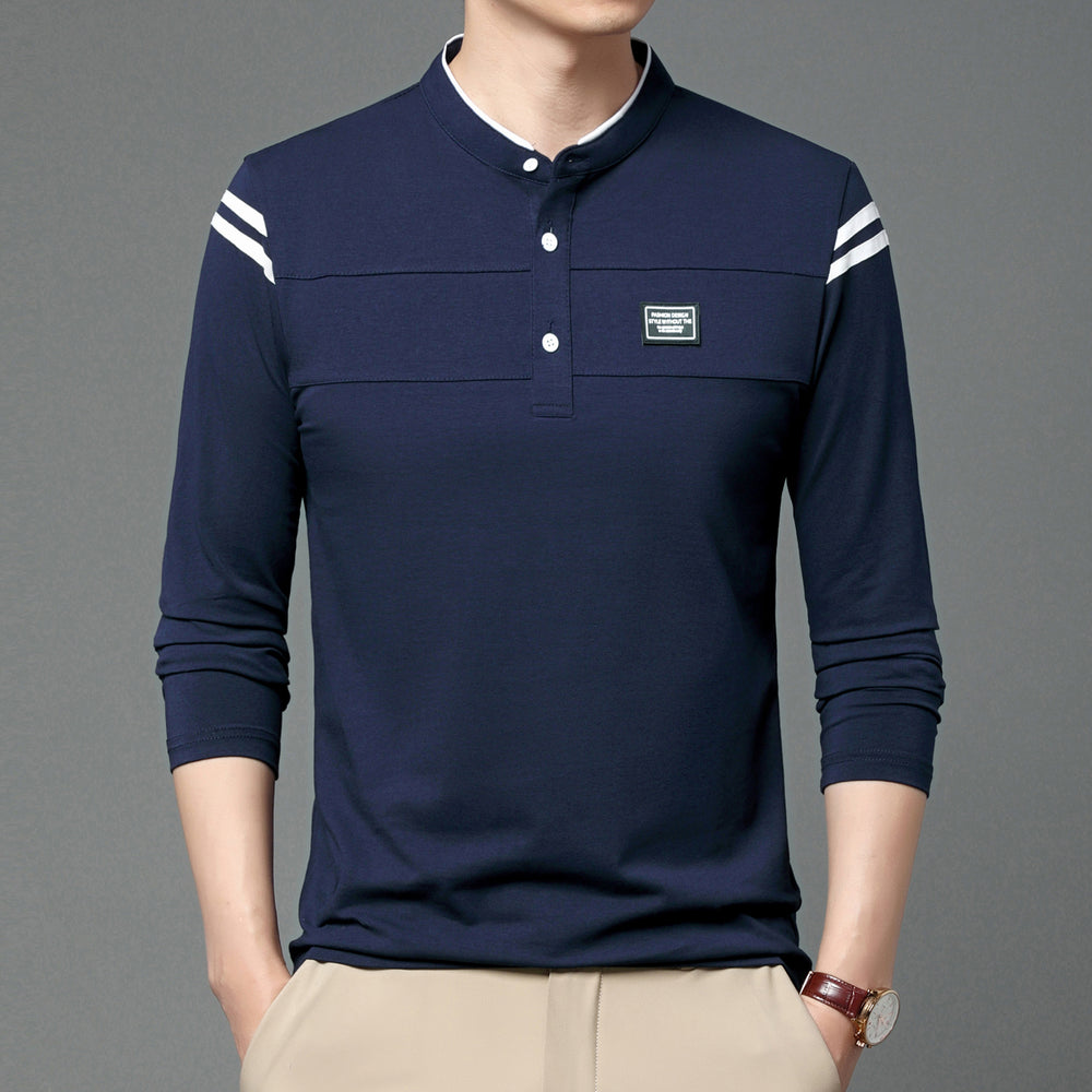 Herren elegantes Langarm-Polo mit modernem Kragen und stylischen Akzenten Aliams