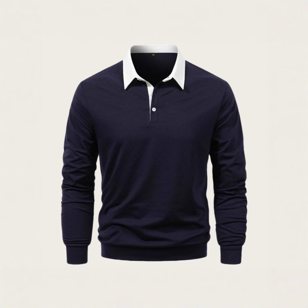 Herren Elegantes Langarm-Polohemd mit Kontrastkragen Aliams