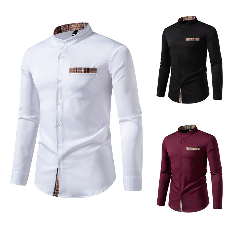 Herren elegantes Langarmhemd mit Kontrastdetails Aliams