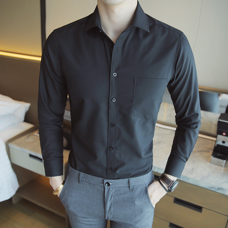 Herren elegantes Langarmhemd mit praktischen Brusttaschen Aliams