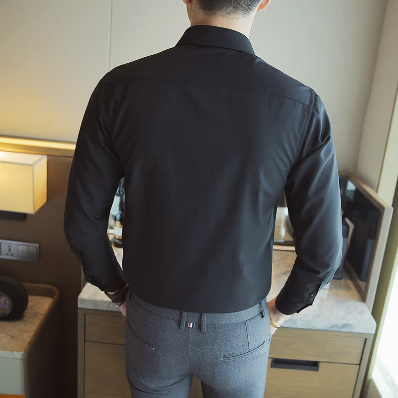 Herren elegantes Langarmhemd mit modernem Schnitt und hochwärtigem Kragen Aliams