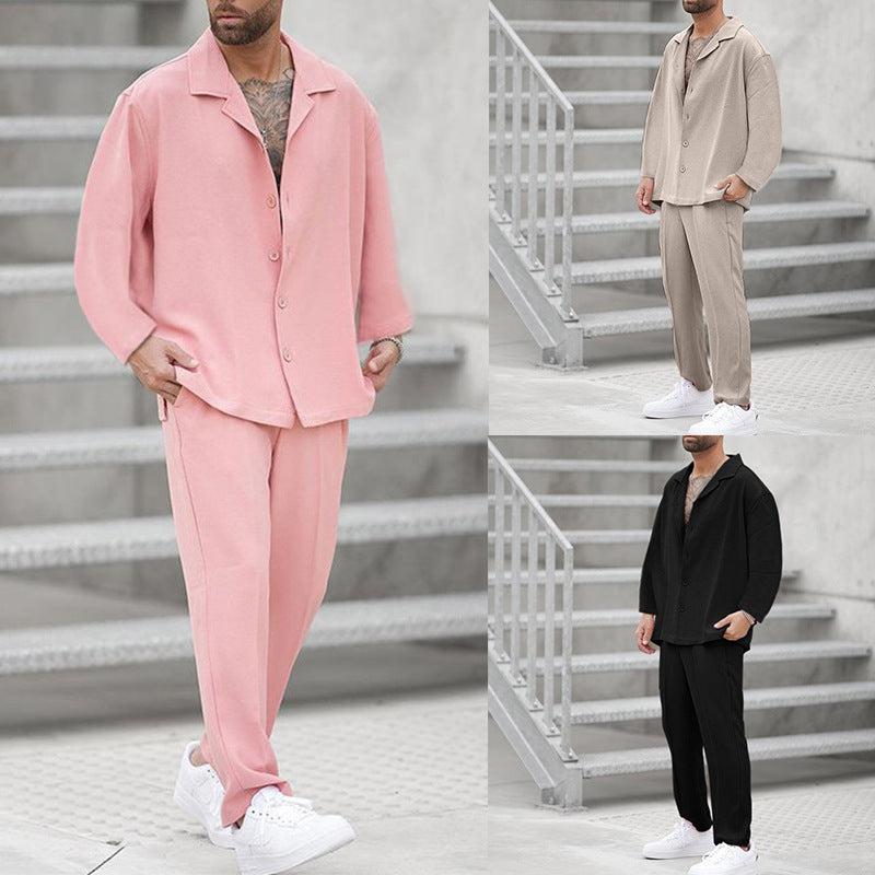 Herren elegantes Lounge-Set aus weichem Material mit durchgehender Knopfleiste Aliams