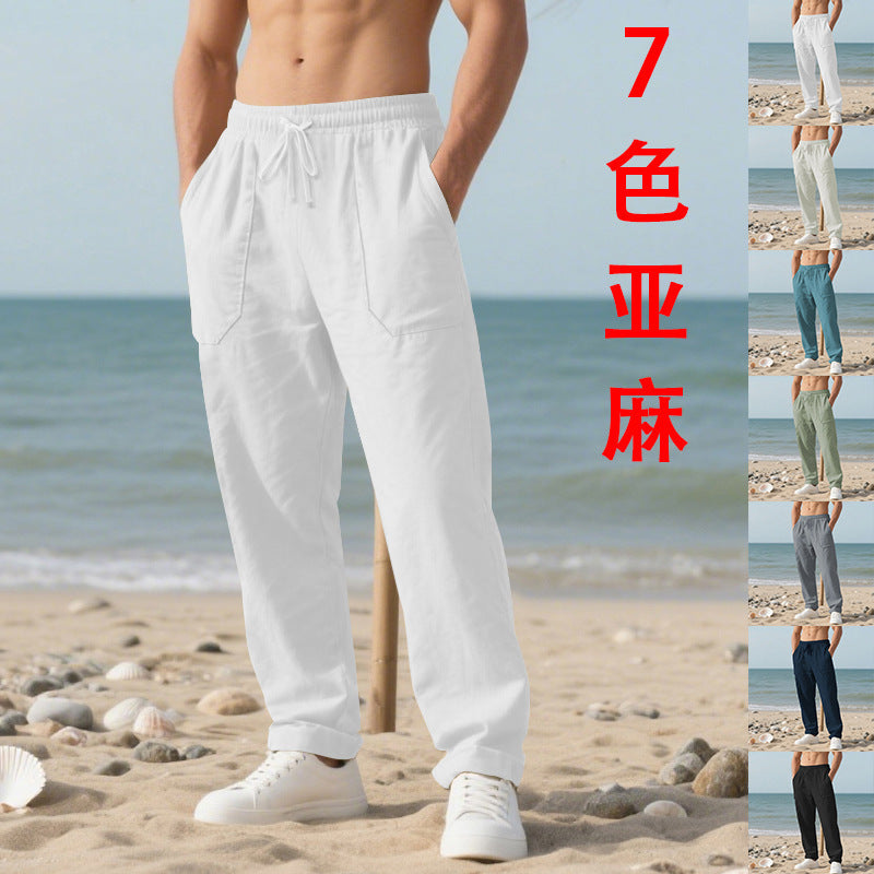 Herren entspannte Leinenhose mit verstellbarem Kordelzug und elastischem Bund Aliams