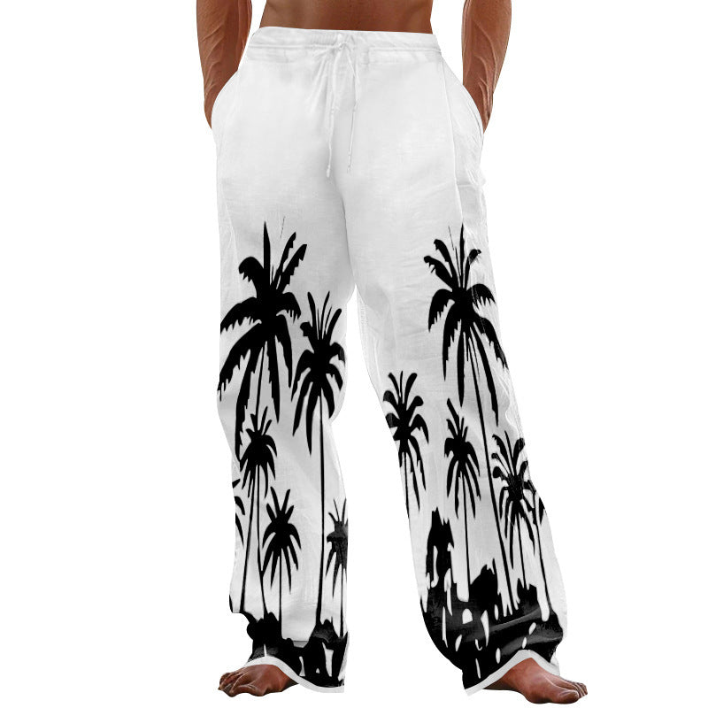 Herren entspannte Strandhose mit Palmendruck Aliams