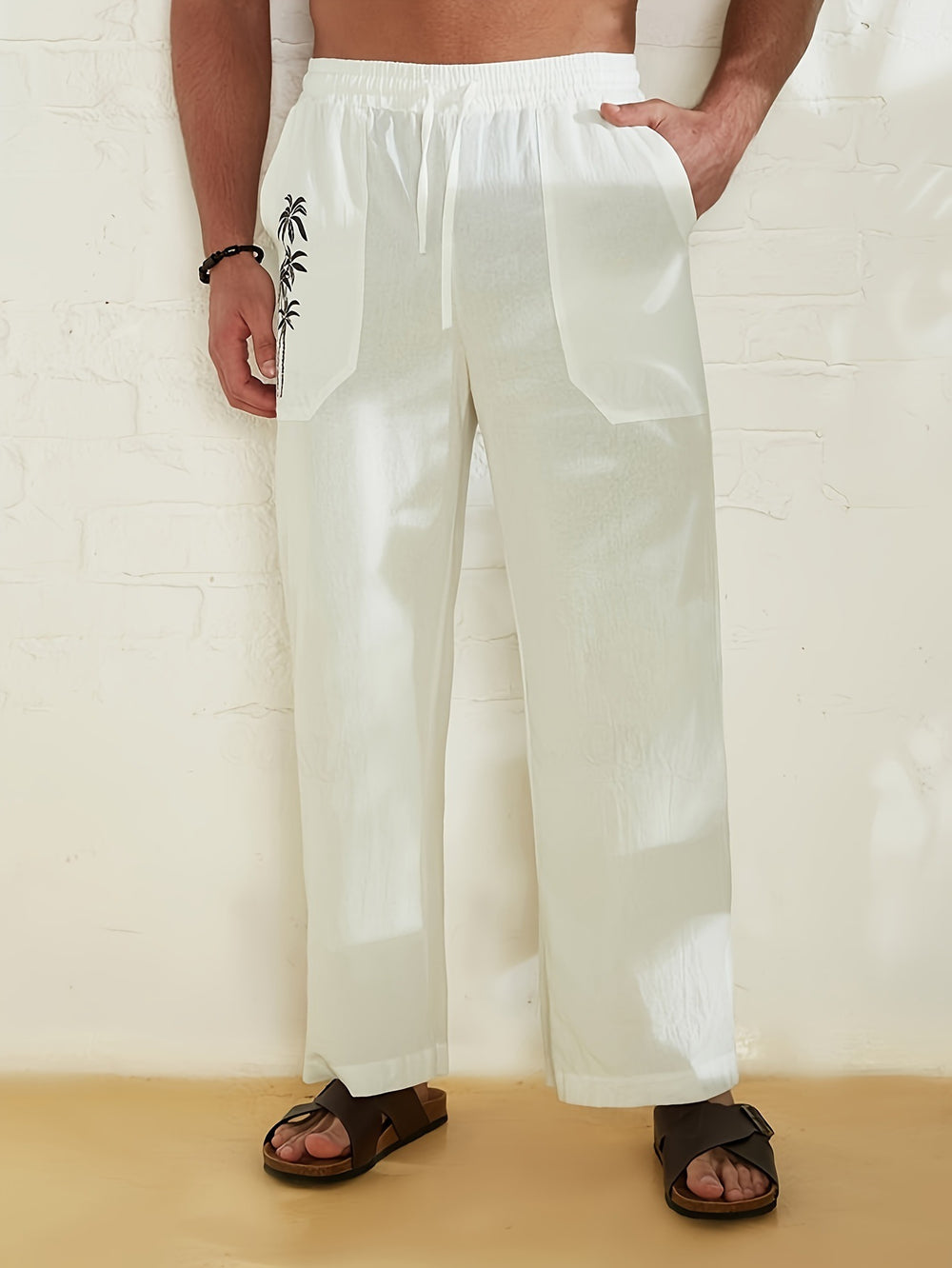 Herren entspannte Leinenhose mit seitlichen Eingrifftaschen Aliams