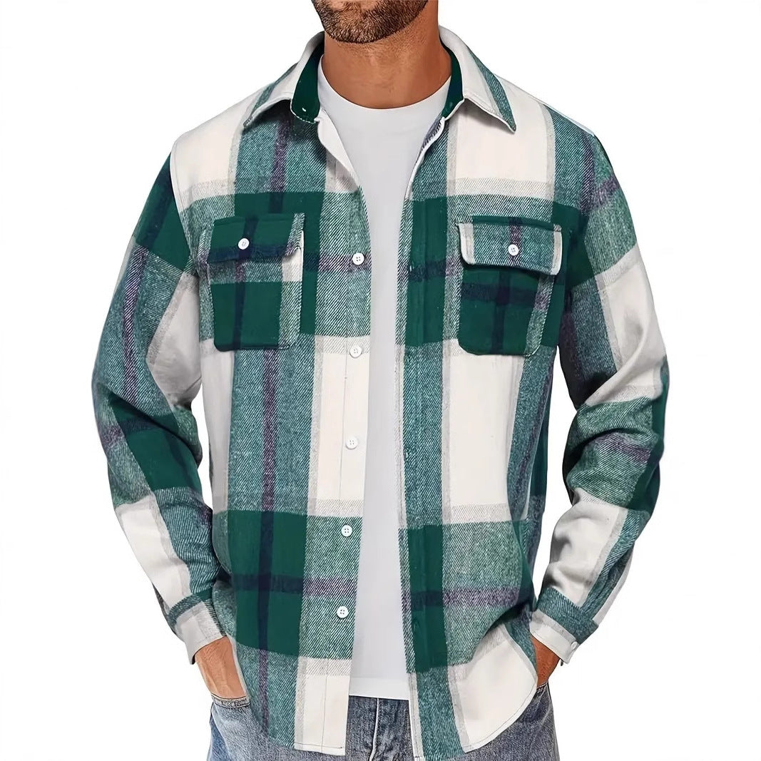 Herren Flanellhemd mit kariertem Muster und praktischen Taschen Aliams