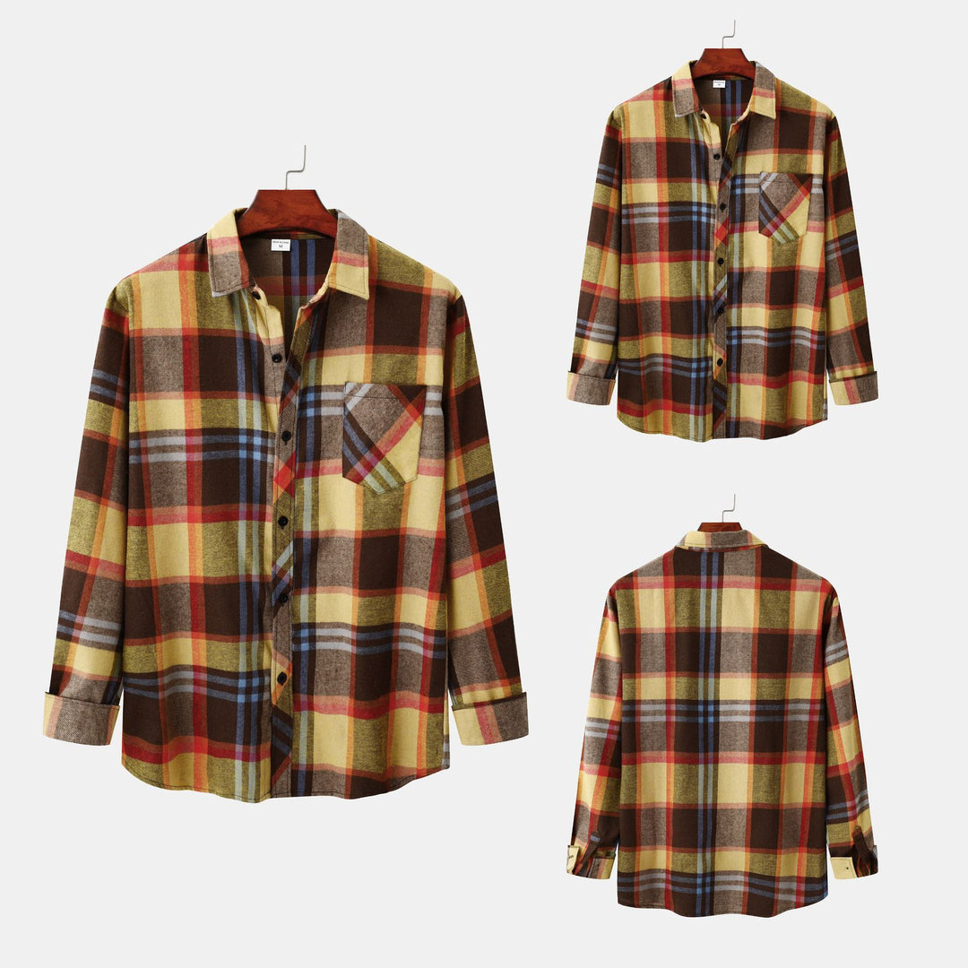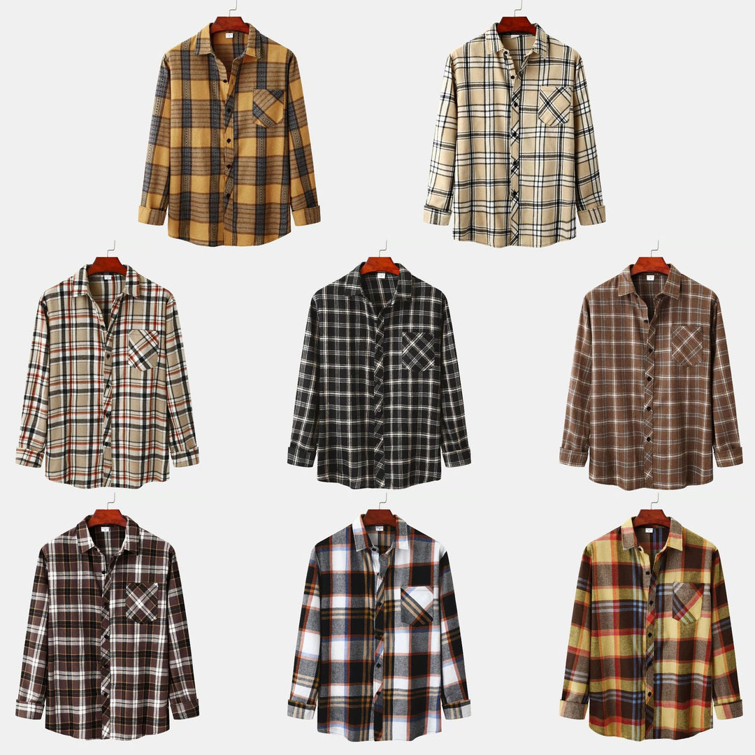 Herren Flanellhemd mit klassischem Karomuster und Brusttasche Aliams