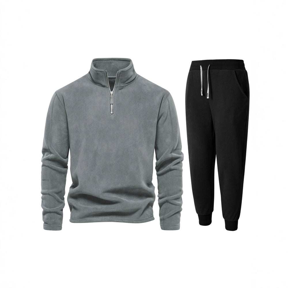 Herren Fleece-Oberteil mit kurzer Reißverschluss und bequemen Jogginghosen Aliams