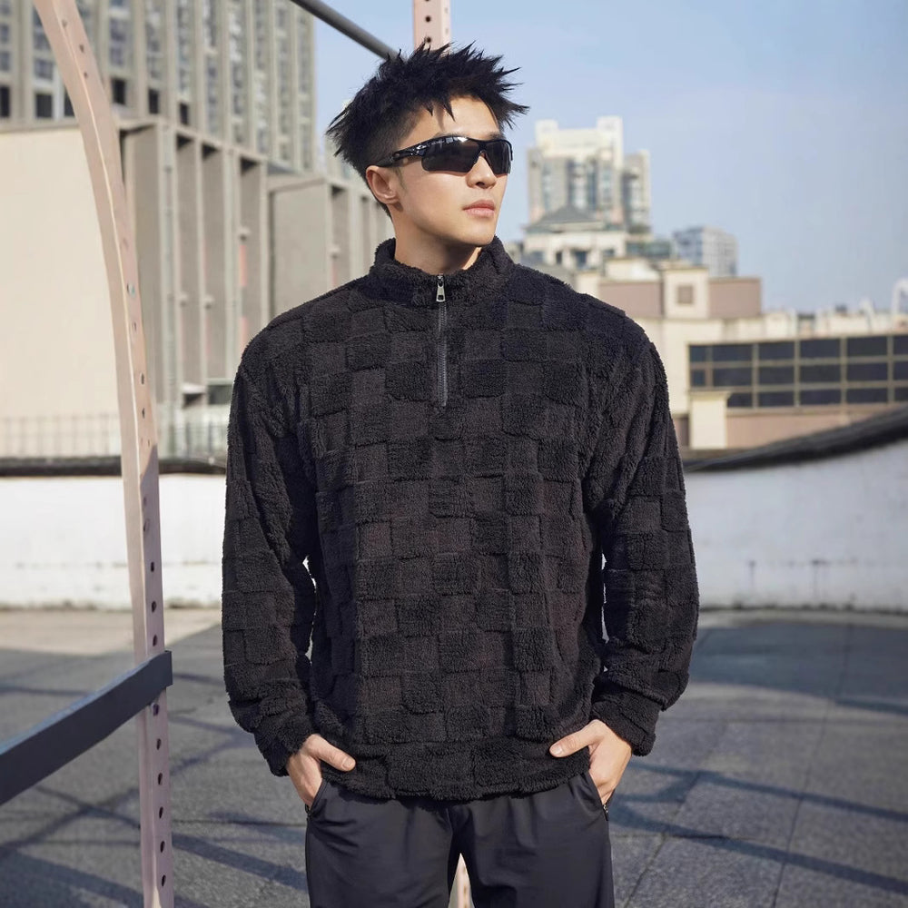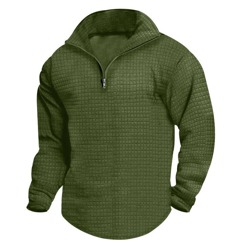 Herren Fleece-Pullover mit strukturierter Oberflächenstruktur und stehender Kragen Aliams
