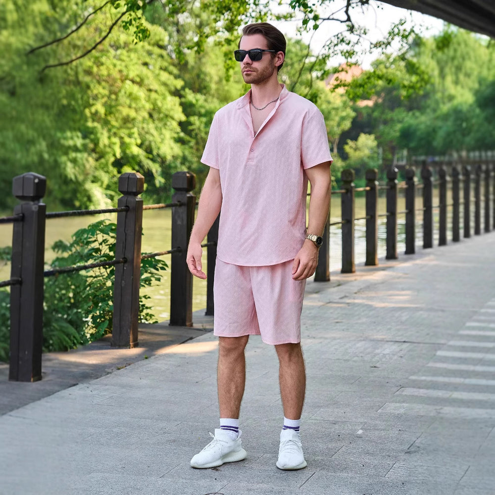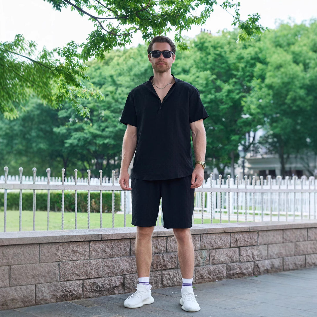 Herren Freizeitanzug mit elegantem Henley-Oberteil und komfortablen Jogginghosen Aliams