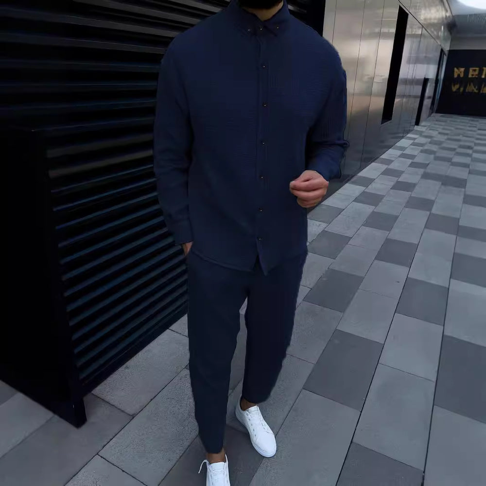 Herren Freizeitanzug mit bequemen Hemd und elastischer Hose Aliams