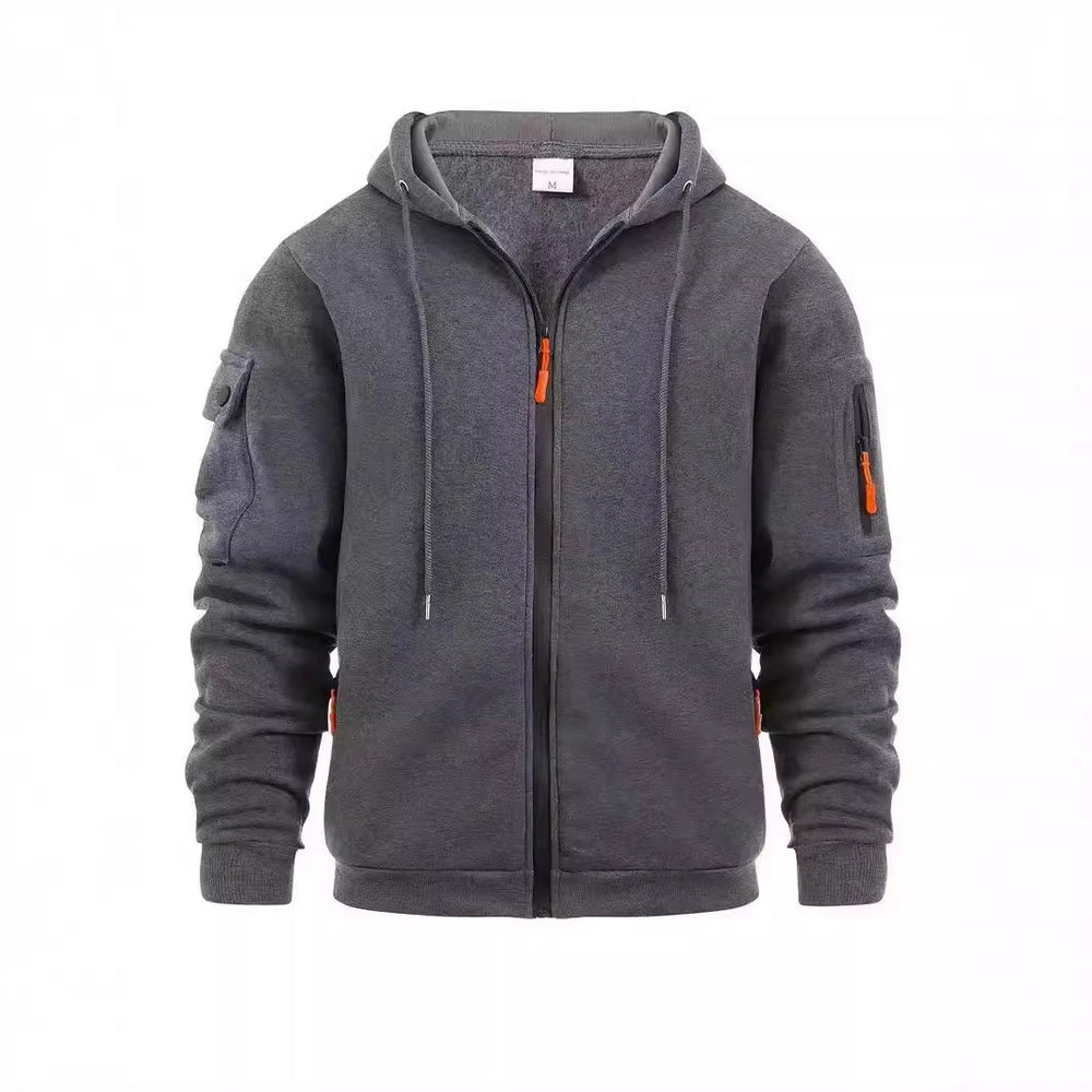 Herren funktionale Kapuzenjacke mit Reißverschluss und praktischen Taschen Aliams