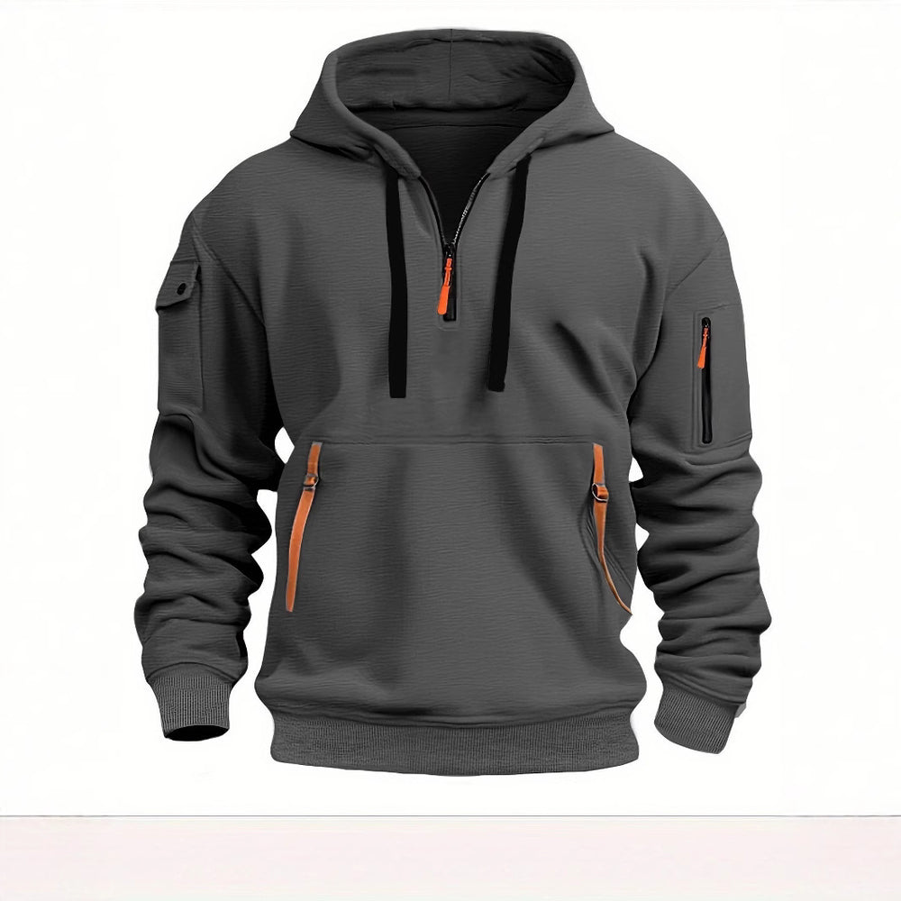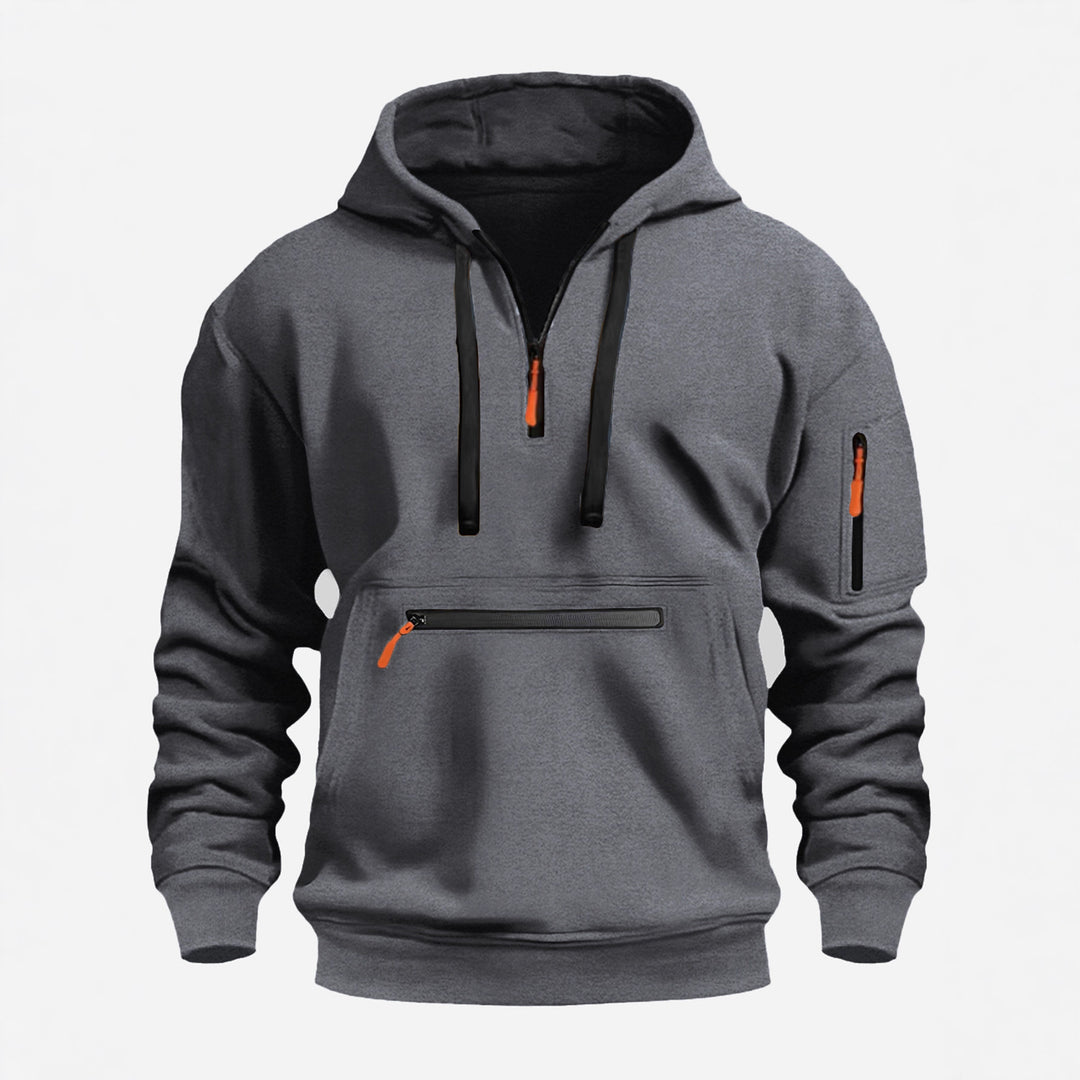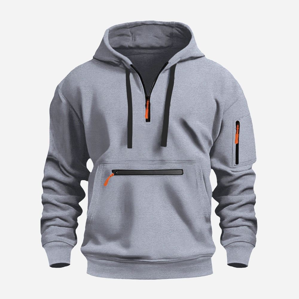 Herren funktionaler Kapuzenpullover mit halbem Reißverschluss und praktischen Taschen Aliams