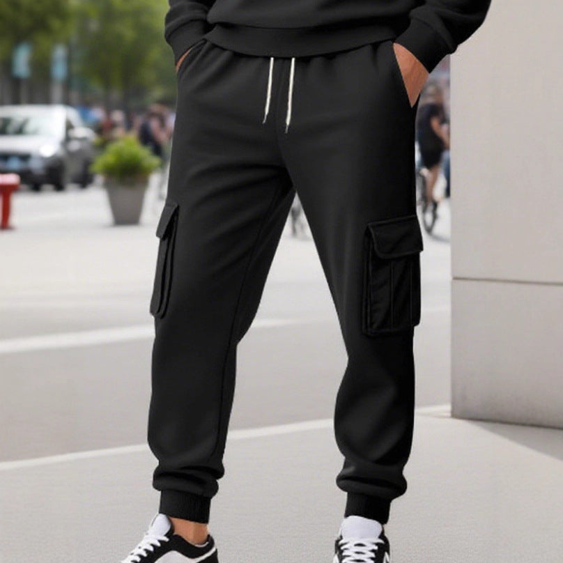 Herren gemütliche Cargo-Hose mit seitlichen Taschen und elastischem Bund Aliams