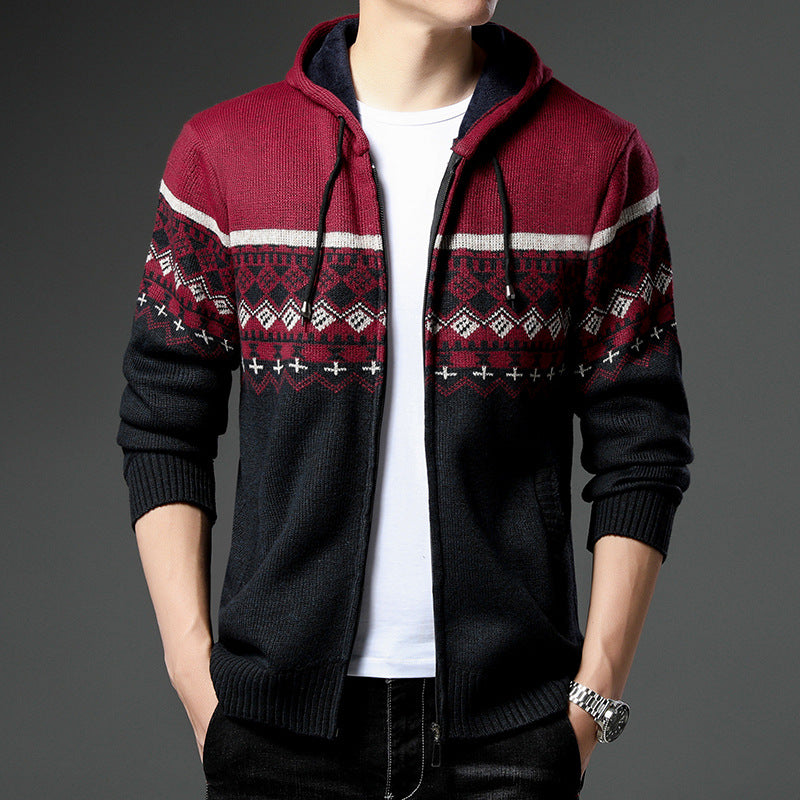 Herren gemusterte Strickjacke mit Kapuze und komfortablem Schnitt Aliams