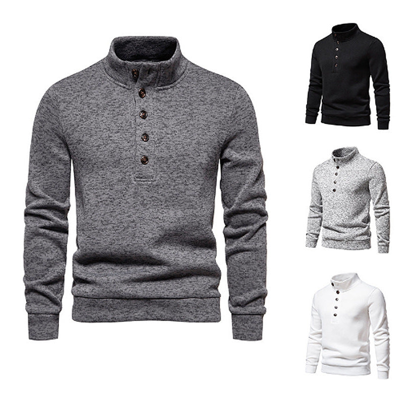 Herren gemütlicher Langarmpullover mit Knopfleiste und Stehkragen Aliams