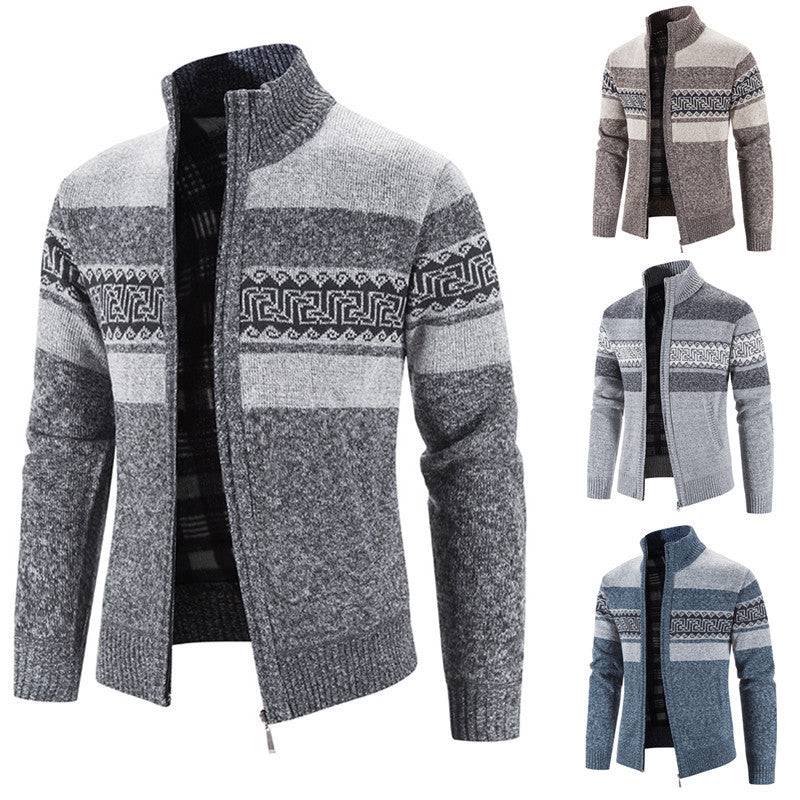 Herren gemütlicher Strickjacke mit Zip-Kragen Aliams