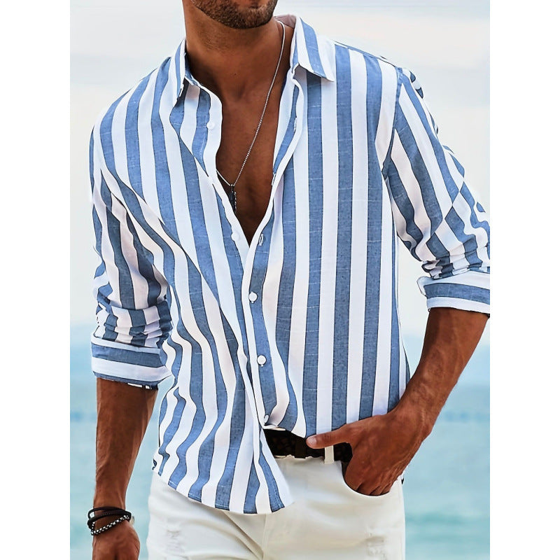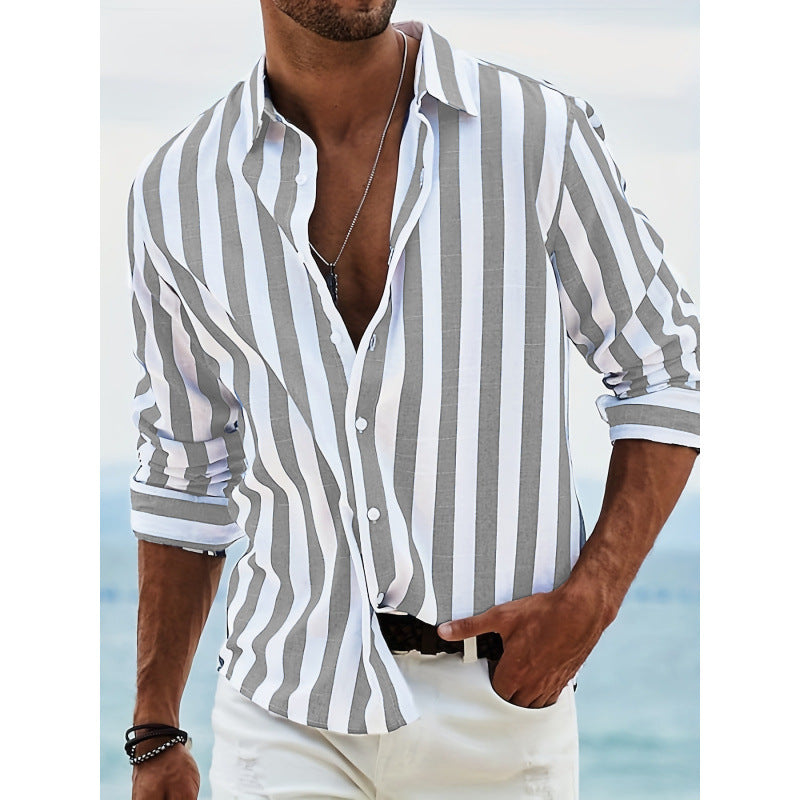 Herren gestreiftes Langarmhemd aus hochwertiger Baumwolle Aliams