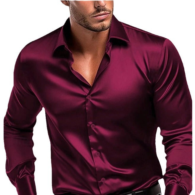 Herren Glänzendes Langarmhemd Aliams