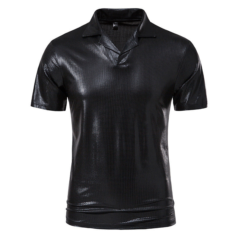 Herren glänzendes V-Ausschnitt T-Shirt im metallischen Look Aliams