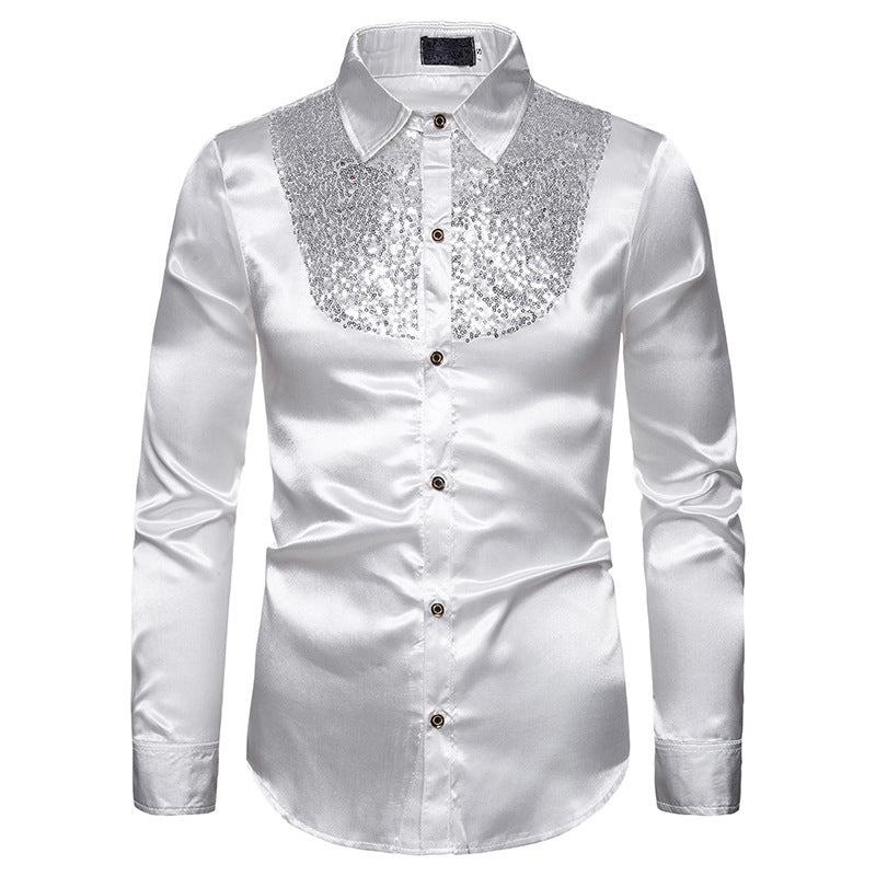 Herren Glänzendes Seidenhemd mit Paillettenelementen Aliams