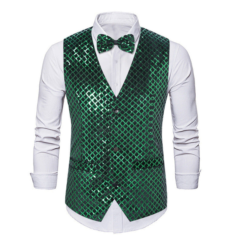 Herren Glitzernden Anzugweste mit Pailletten und klassischem Schnitt Aliams