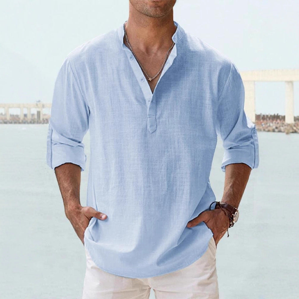 Herren Hemd mit lässigem Kragen und Rollärmeln Aliams
