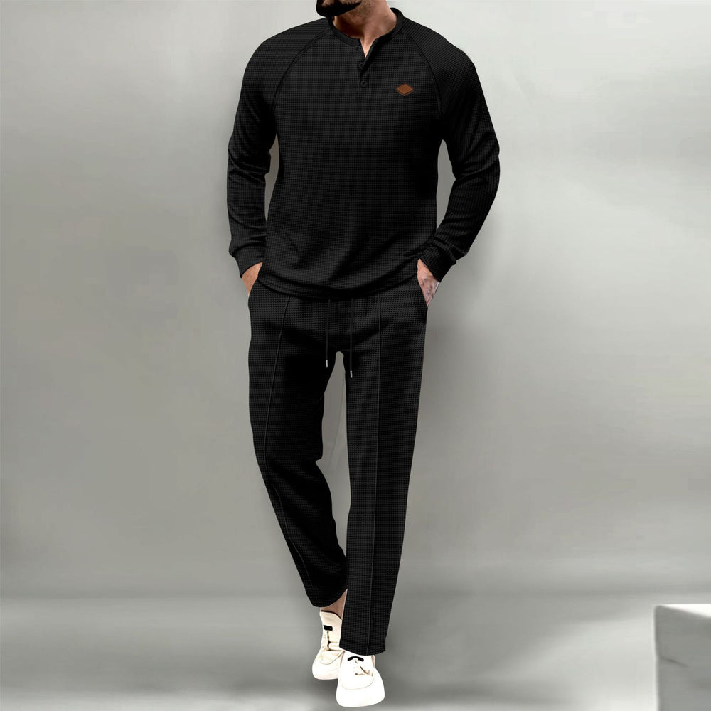 Herren hochwertiger Freizeitanzug mit Knopfleiste und eleganten Taschen Aliams