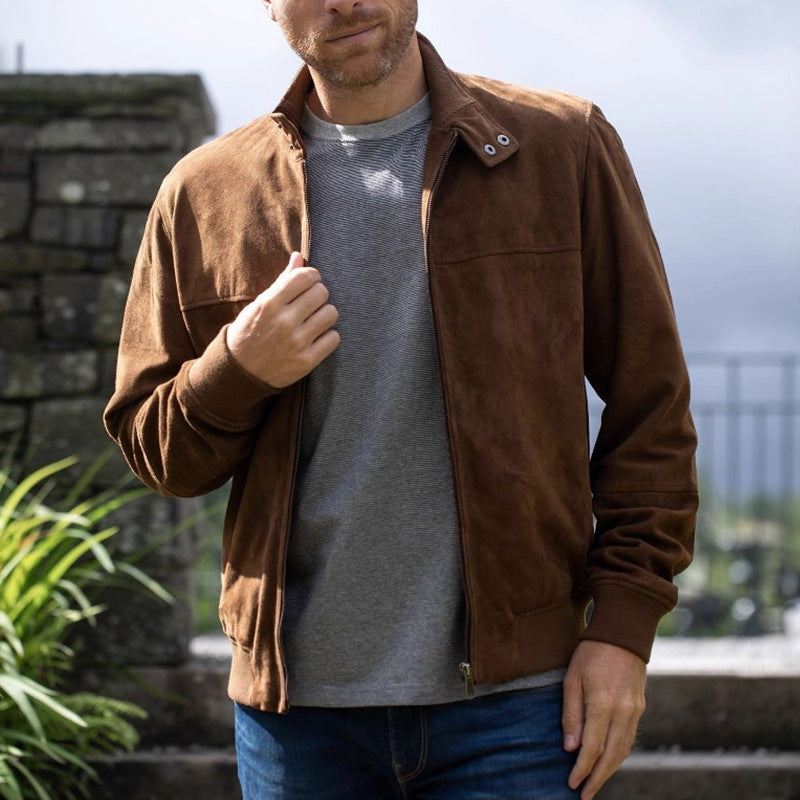 Herren hochwertige Wildlederjacke mit steigendem Kragen Aliams