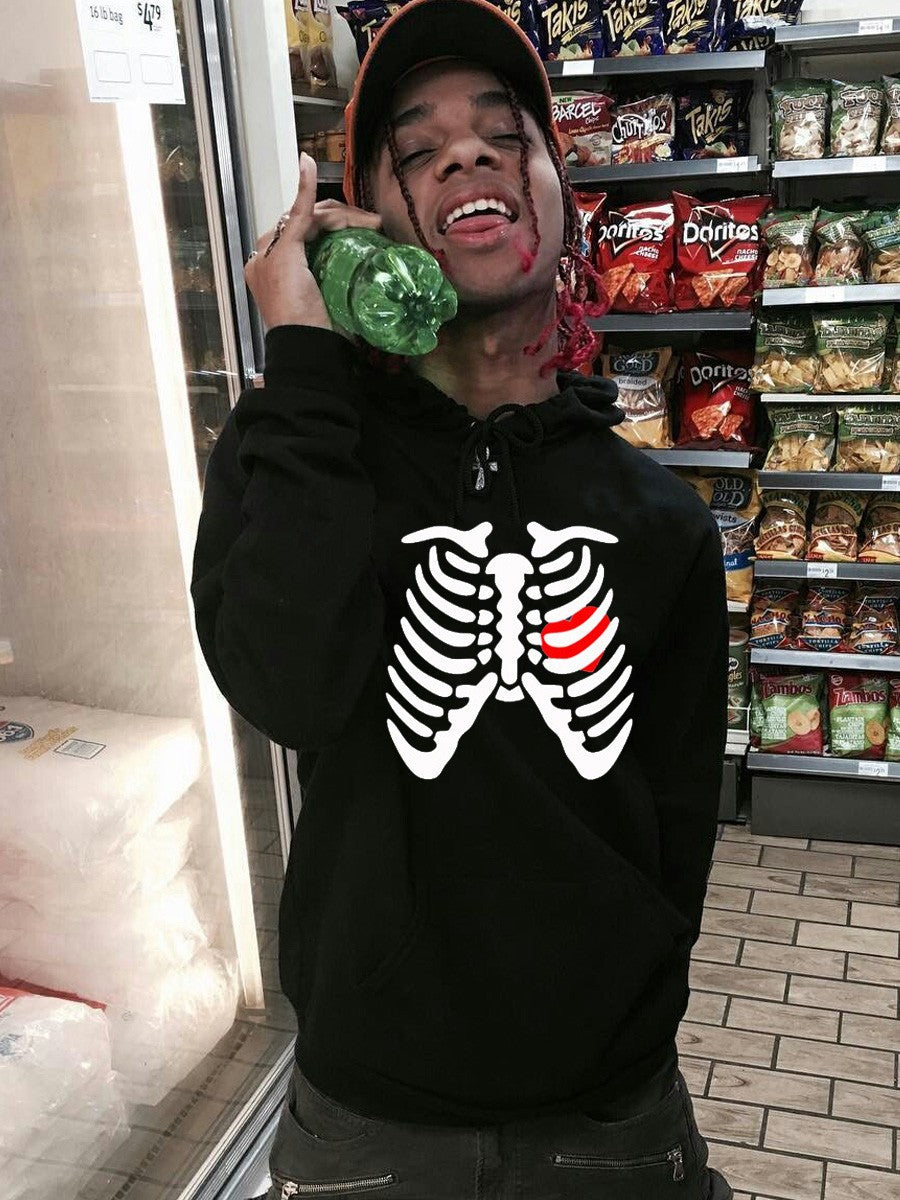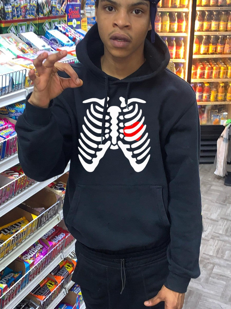 Herren Hoodie mit kreativem Skelett-Druck Aliams