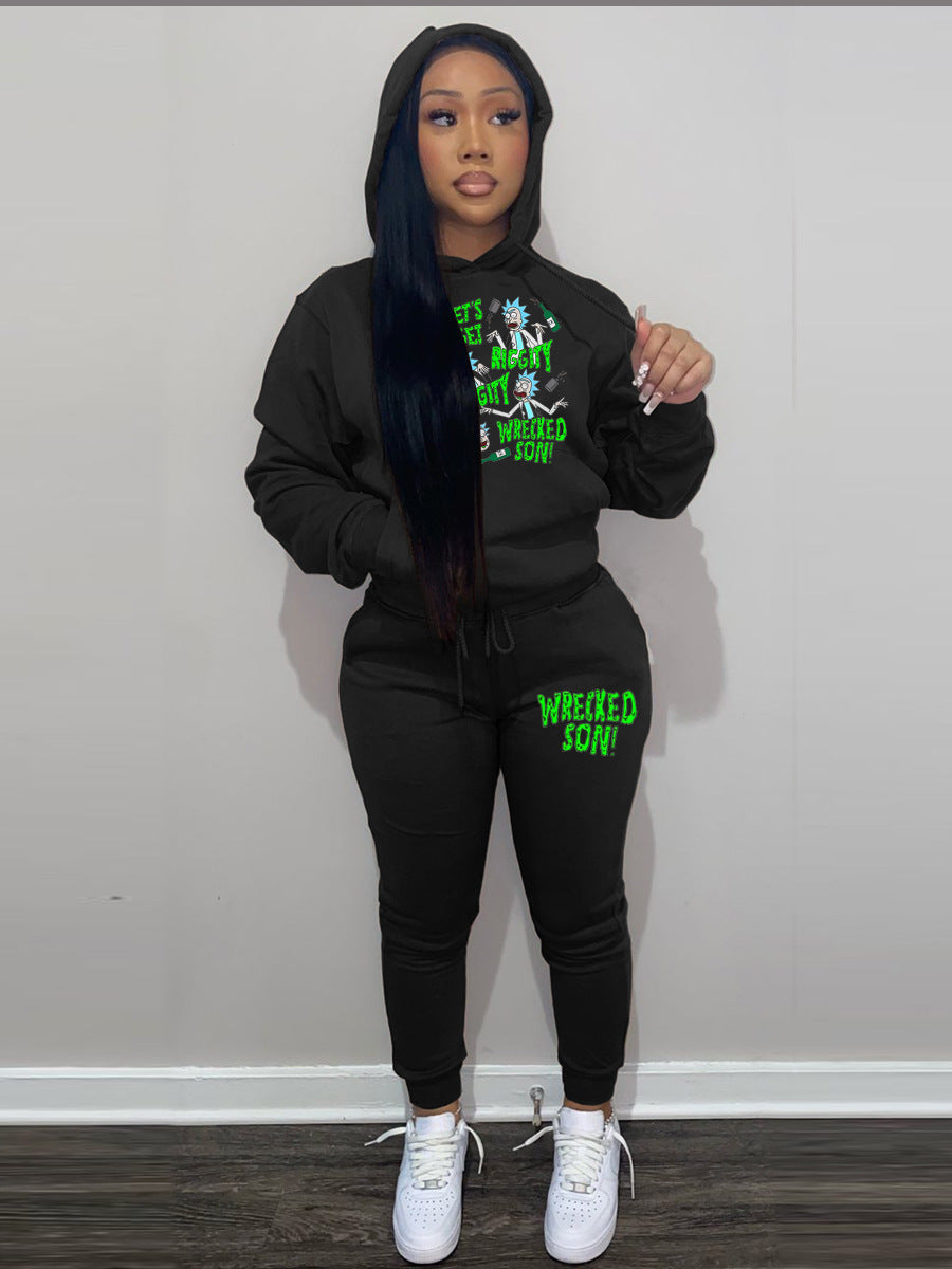 Herren Hoodie und Jogginghose im Comic-Stil mit buntem Druck Aliams
