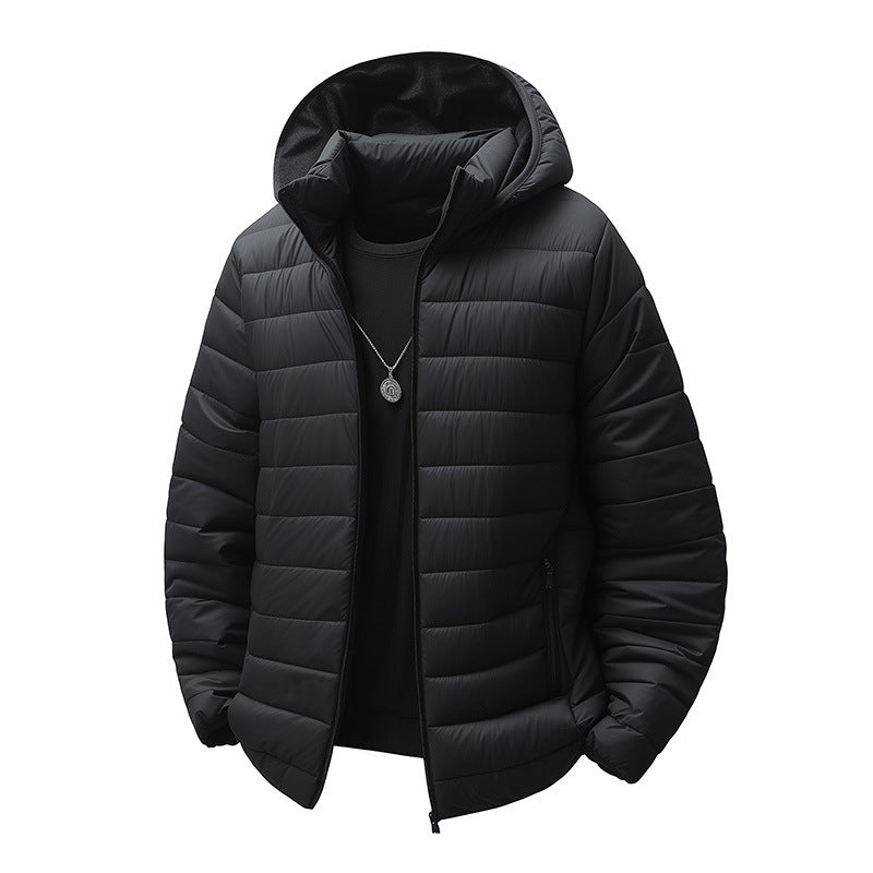 Herren isolierte Jacke mit glänzender Oberfläche und Kapuze Aliams