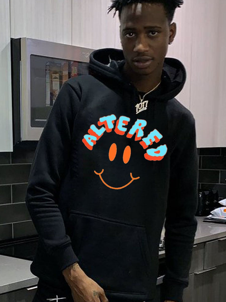 Herren Kapuzenpullover mit auffälligem Smiley-Print und bequemer Passform Aliams