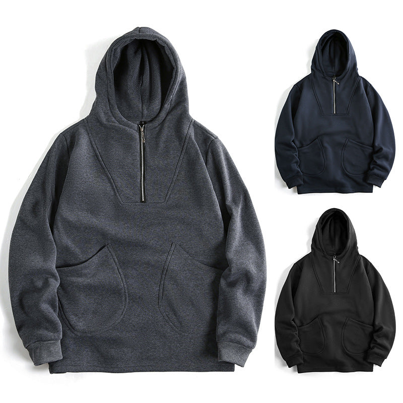 Herren Kapuzenpullover mit Knopfleiste und Kängurutasche Aliams