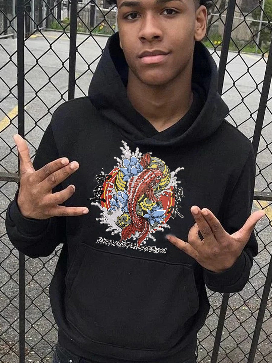 Herren Kapuzenpullover mit künstlerischem Koi-Motiv Aliams