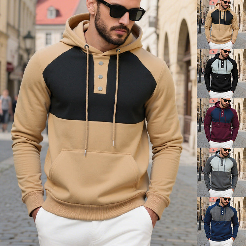 Herren Kapuzensweater mit modernem Henley-Ausschnitt und kontrastierenden Ärmeln Aliams