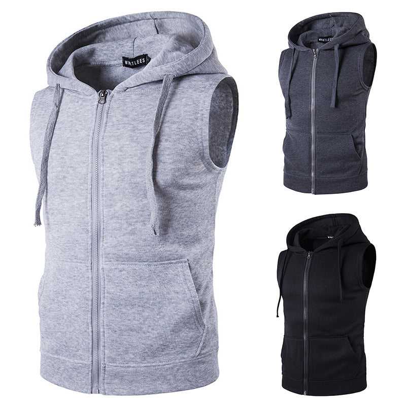 Herren Kapuzenweste mit durchgehendem Reißverschluss und seitlichen Taschen Aliams