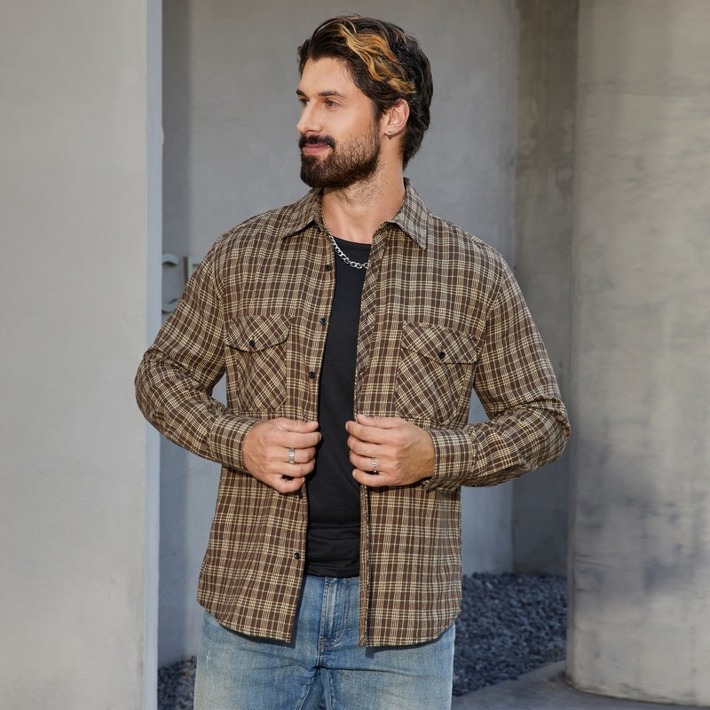 Herren karierte Flanelljacke mit knöpfbaren Taschen und modernem Schnitt Aliams