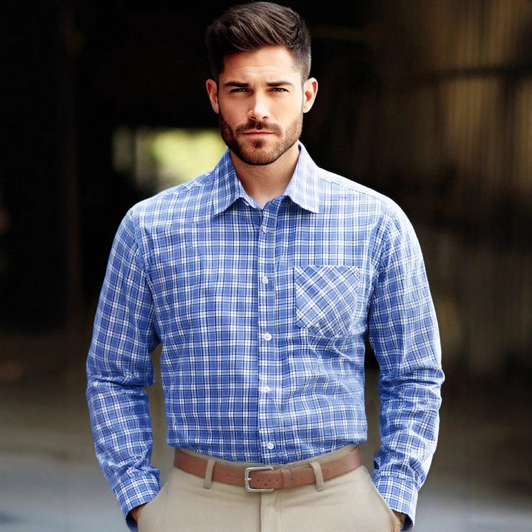 Herren Karierte Arbeitshemd mit aufgesetzten Taschen Aliams