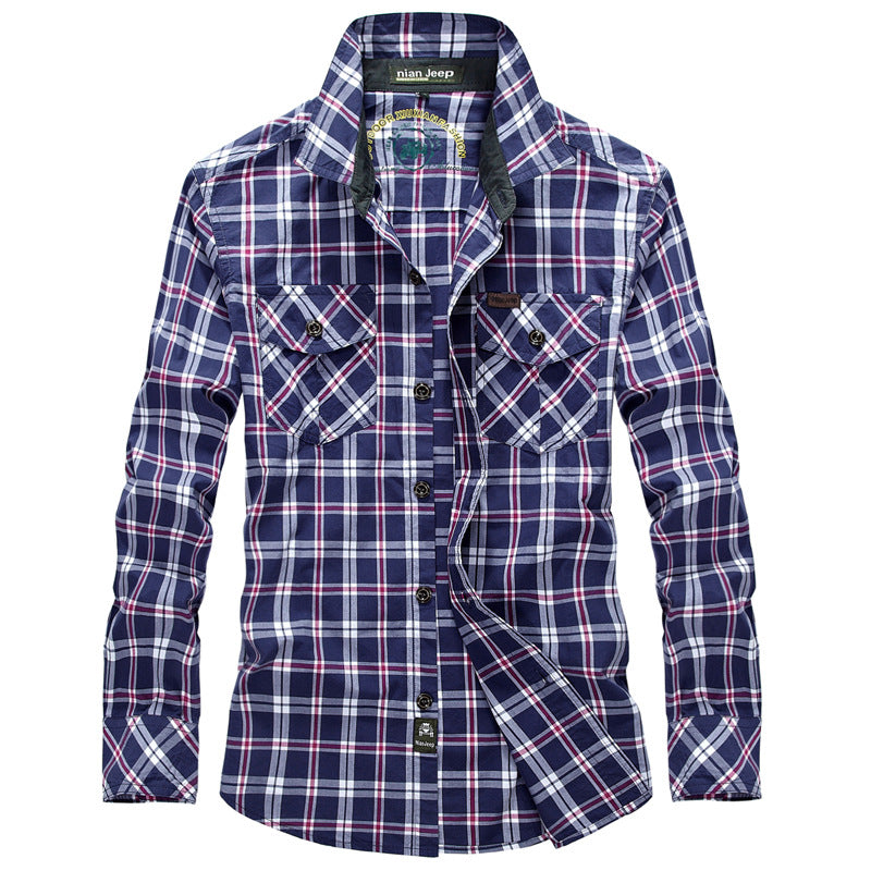 Herren karierte Hemd mit zwei Brusttaschen Aliams