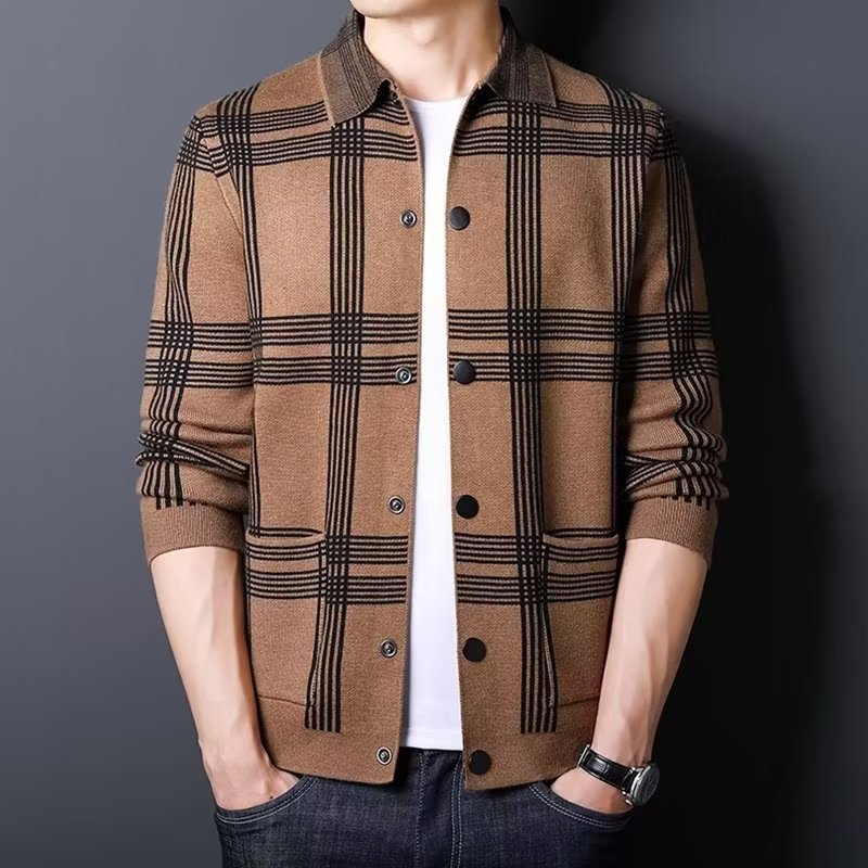 Herren Karierte Strickjacke mit modernem Schnitt Aliams