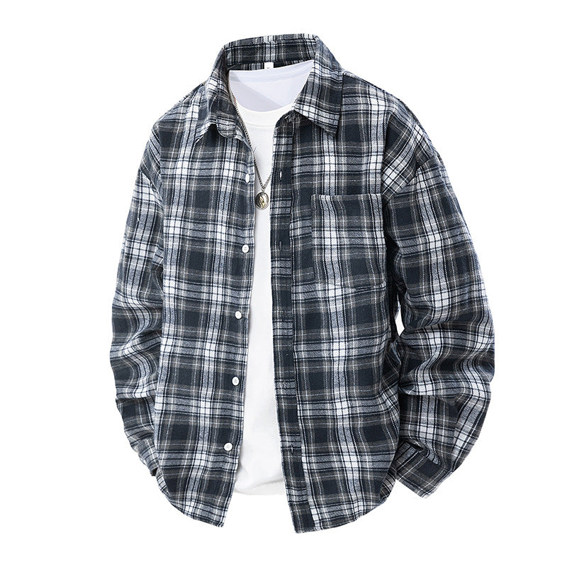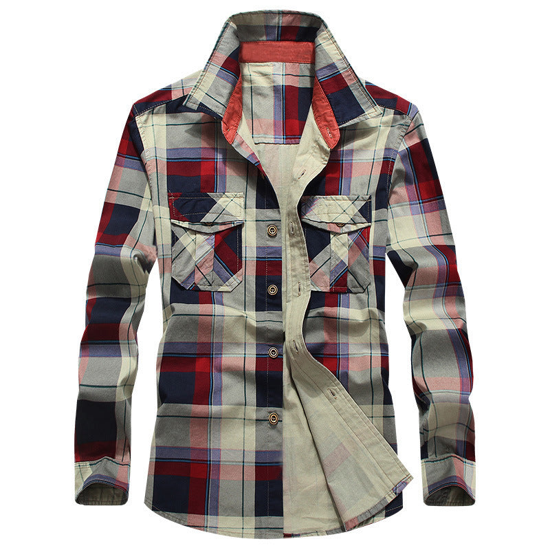 Herren kariertes Flanellhemd mit zwei Brusttaschen Aliams